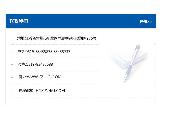 地址:常州市新北區友邦商務大廈1幢16、17層  電話:0519-85101652  傳真:0519-85112595  郵編:213022  網址:www.cz-jiayue_cn.zhengbenli.com  郵箱:xiajifengaa@163.com